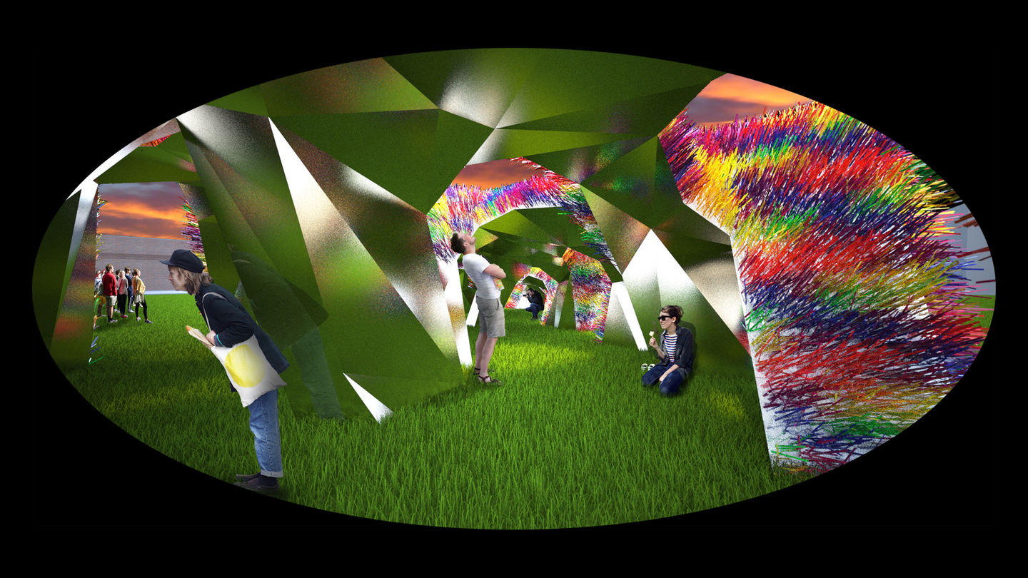 From the primary colors, a continuous spectrum is formed. How the spectrum is divided into distinct colors, is a matter of historical and cultural demand. From Issac Newton’s seven prismatic colors, to an almost immeasurable quantity, culture has continued to distill new colors for a variety of uses. The iconographic presence of color is pertinent to cultural linkages and the periods, which they represent. As our culture advances, so too, does our color palette. Therefore, why is Art Basel, an exhibition dedicated to the celebration of art and design culture, not celebrating its source, Color? Color, as an idea, is an interesting departure point to build an installation around, which can engage both the concept of color and the many levels that color operates within. Through this installation, we can begin to push for a critical discourse regarding the history of color and its cultural significance to art and design. The installation is both about color and the many industries it shapes; architecture, art, fashion, graphic design, and industrial design. Color is the link between all these creative fields. Additionally, the installation will act as an education model by informing the formation of color through the use of only 3 colors. The initial 3 colors are Blue, Red, and Yellow, from which we are able to generate Green, Orange, & Purple. The goal of the installation is to produce a platform to promote and educate the public about the important role color plays in art and design. The installation attempts to produce an illusion from a small pallet of colors, in this case, 3 colors: Red, Blue, and Yellow. From these primary colors and through a simple operation of mixture, we set out to expand the initial 3 colors into 6 total. Purple, Green, and Orange are achieved through a percentage mixture that was perfected by distance & overlapping.